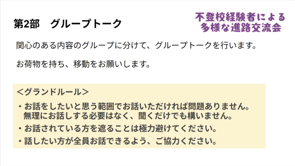 2025年10月4日「不登校経験者による多様な進路交流会」レポート
